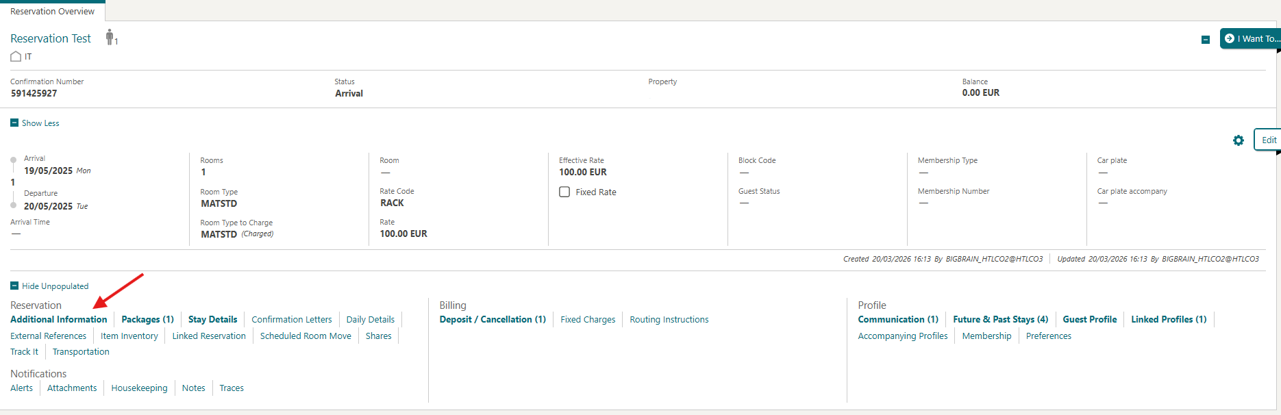 Una volta impostato lo Split Payment, entrare nella prenotazione e aprire la sezione Additional Information.