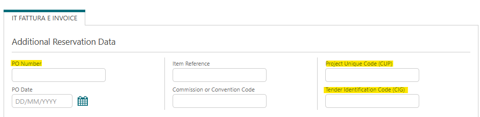 Se non si dispone di un ordine d’acquisto, inserire comunque un valore nel campo, ad esempio la data di arrivo e partenza oppure il nome dell’ospite.