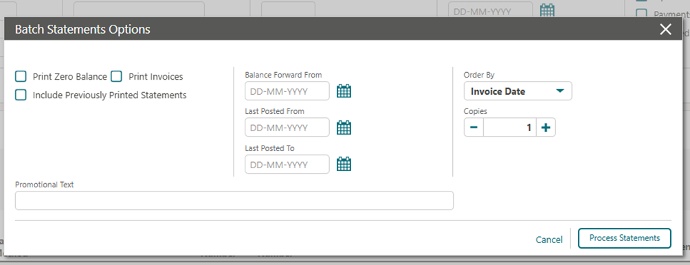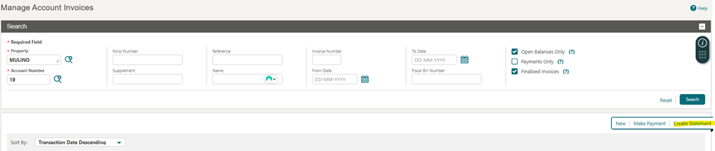 I filtri permettono di restringere lo Statement alle sole fatture rilevanti.